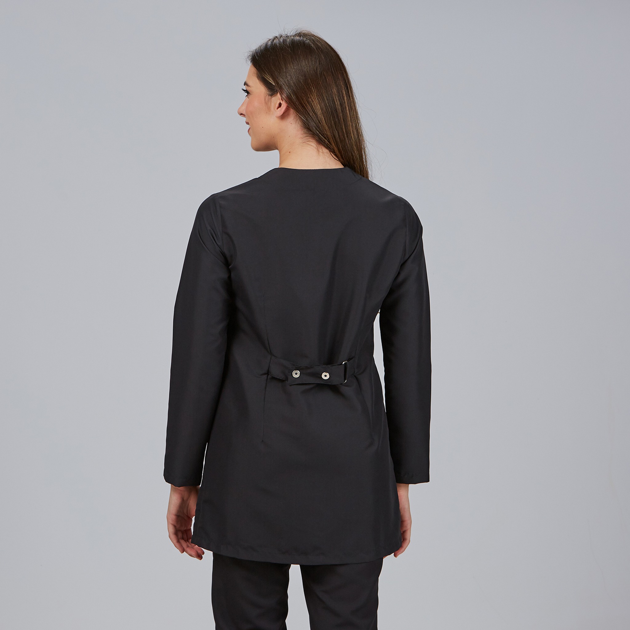 Disponible en blanco o negro, es la elección perfecta para uniformes en hospitales, clínicas, centros médicos, farmacias, laboratorios, veterinarios, estéticas, spas y comercios. También disponible en modelo masculino (ref. 616300).