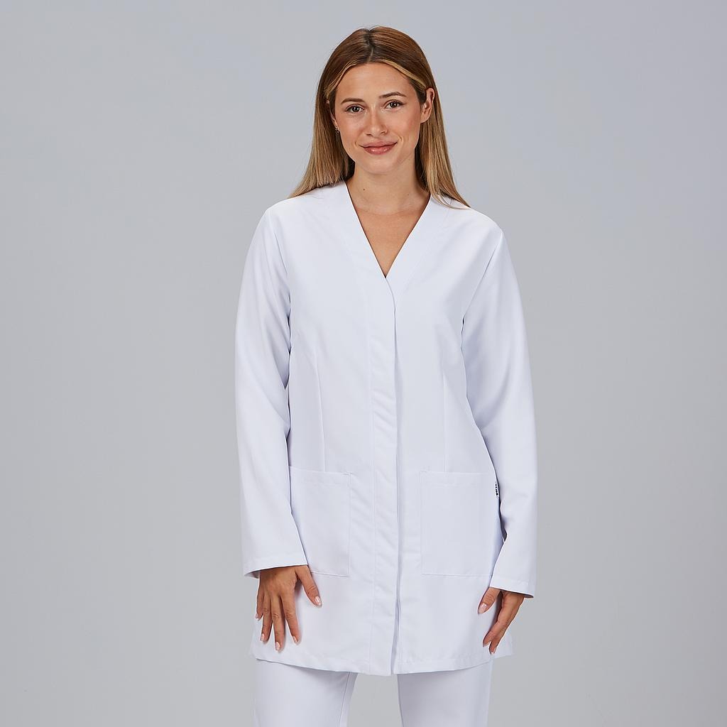 BLUSA MUJER VICTORIA, una bata de manga larga diseñada para profesionales de la salud y el ámbito laboral.