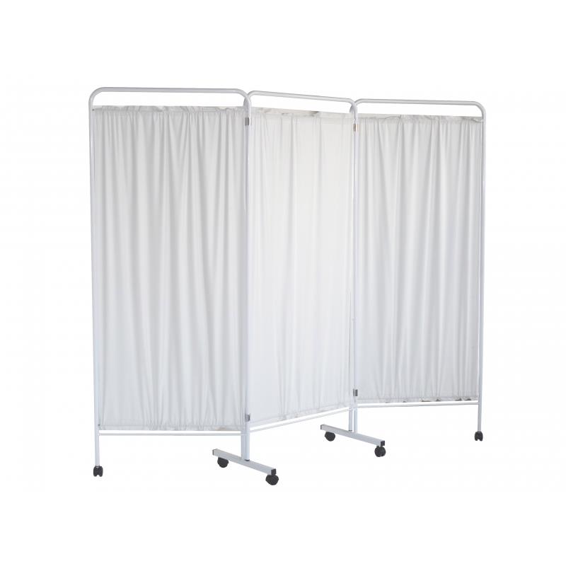 El biombo de tres cuerpos en acero pintado en blanco es una solución práctica y funcional para crear espacios privados en entornos médicos y de atención sanitaria.
