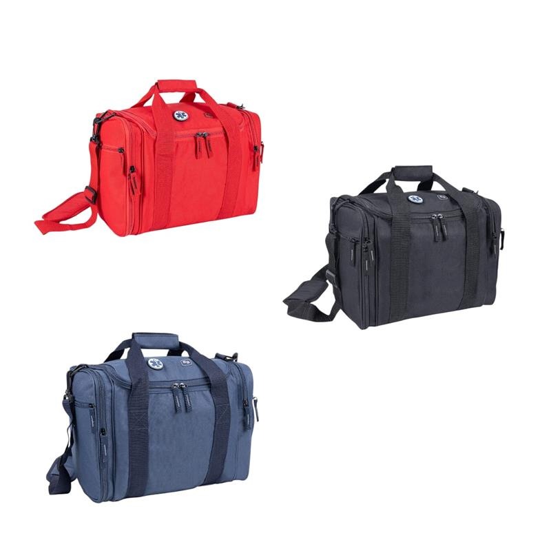 Cuenta con un compartimento principal espacioso, adecuado para almacenar vendas, gasas, apósitos, guantes, soluciones antisépticas, entre otros elementos esenciales. Además, dispone de un bolsillo lateral amplio y un segundo bolsillo lateral con seis compartimentos de rejilla y seis bandas elásticas, que permiten organizar el material pequeño o de uso frecuente de manera visible y accesible.