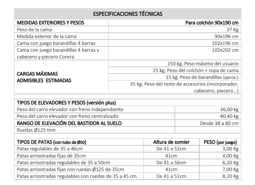 -Posibilidad de montar barandillas de seguridad laterales (consultar modelos).